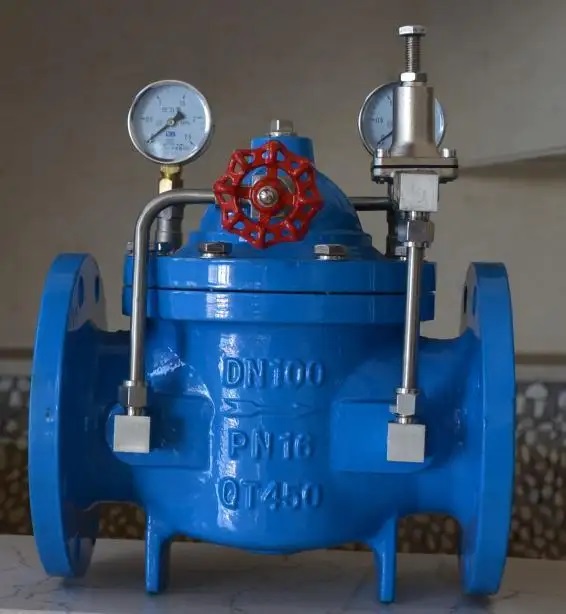 作用原理:減壓閥的是靠閥內(nèi)流道對水流的局部阻力降低水壓,水壓降的范圍由連接閥瓣的薄膜或活塞兩側(cè)的進(jìn)出口水壓差自動調(diào)節(jié)。定比減壓原理是利用閥體中浮動活塞的水壓比控制,進(jìn)出口端減壓比與進(jìn)出口側(cè)活塞面積比成反比。這種減壓閥工作平穩(wěn)無振動;閥體內(nèi)無彈簧,故無彈簧銹蝕、金屬疲勞失效之慮;密封性能良好不滲漏,因而既減動壓(水流動時)又減靜壓(流量為0時);特別是在減壓的同時不影響水流量。